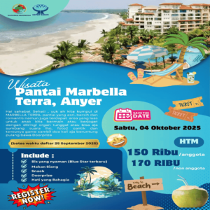 Dalam rangka mempererat kebersamaan dan memberikan pengalaman seru bagi seluruh anggota maupun non anggota, Koperasi Kredit Sehati mengundang Bapak/Ibu untuk bergabung dalam acara Wisata ke Pantai Marbella Terra Anyer.